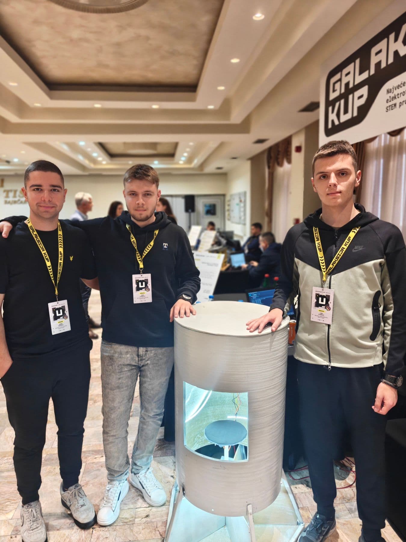 Ученици одељења IV-2 Един Леђеновић, Ђорђе Шћеповић и Лука Оташевић, заједно са својим ментором Боривојем Васојевићем, учествовали су у финалу такмичења Галаксија куп. Том приликом представили су свој пројекат „Паметна канта за аутоматско сортирање отпада“ пред стручним жиријем. Првог дана финала ученици су презентовали свој рад, али и имали прилику да се упознају са вршњацима из других школа и њиховим пројектима. Другог дана одржана је pitch презентација, где су наши ученици још једном показали сигурност, знање и одличну припремљеност. Коментари жирија били су веома похвални, што додатно потврђује квалитет и значај њиховог рада. Након завршетка такмичења, ученици су посетили Народни музеј у Зајечару, чиме је ово искуство додатно обогаћено. Поносни смо на њихов успех, труд и представљање наше школе. Стечено знање и искуство биће им од великог значаја у даљем образовању и будућој каријери.